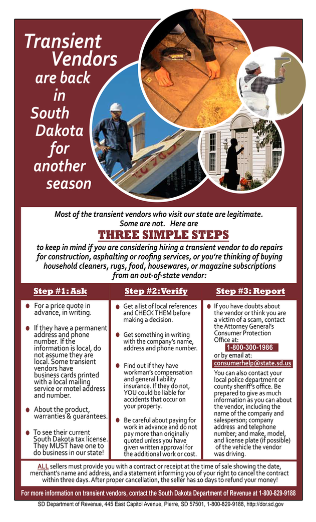 For more information about obtaining a contractors excise tax license contact the South Dakota Department of Revenue at 445 East Capital Ave Pierre SD 57501-3185.